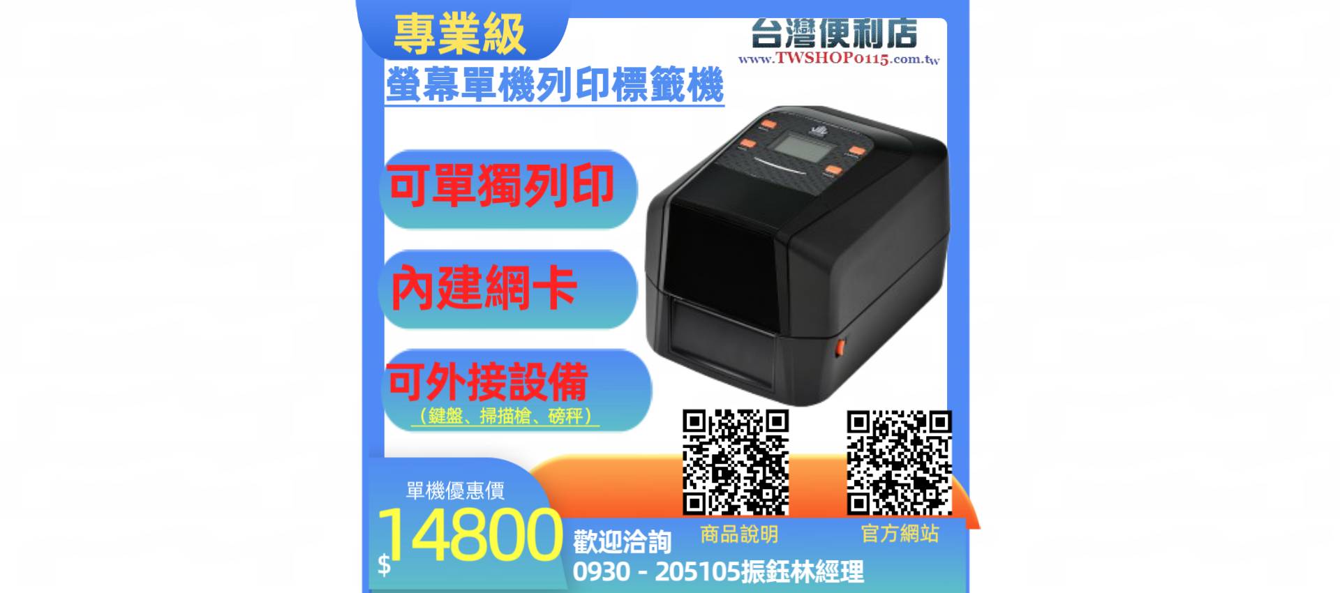 本公司專營Brother/Panasonic/三星..等等全系列辦公資訊設備、週邊耗材、通訊/辦公相關設備販售及維修,本館販售所有商品均可提供原廠證明。對商品如有任何疑問,可撥打網頁所提供的服務電話: 0930-205-105 / LINE ID: @twshop0115